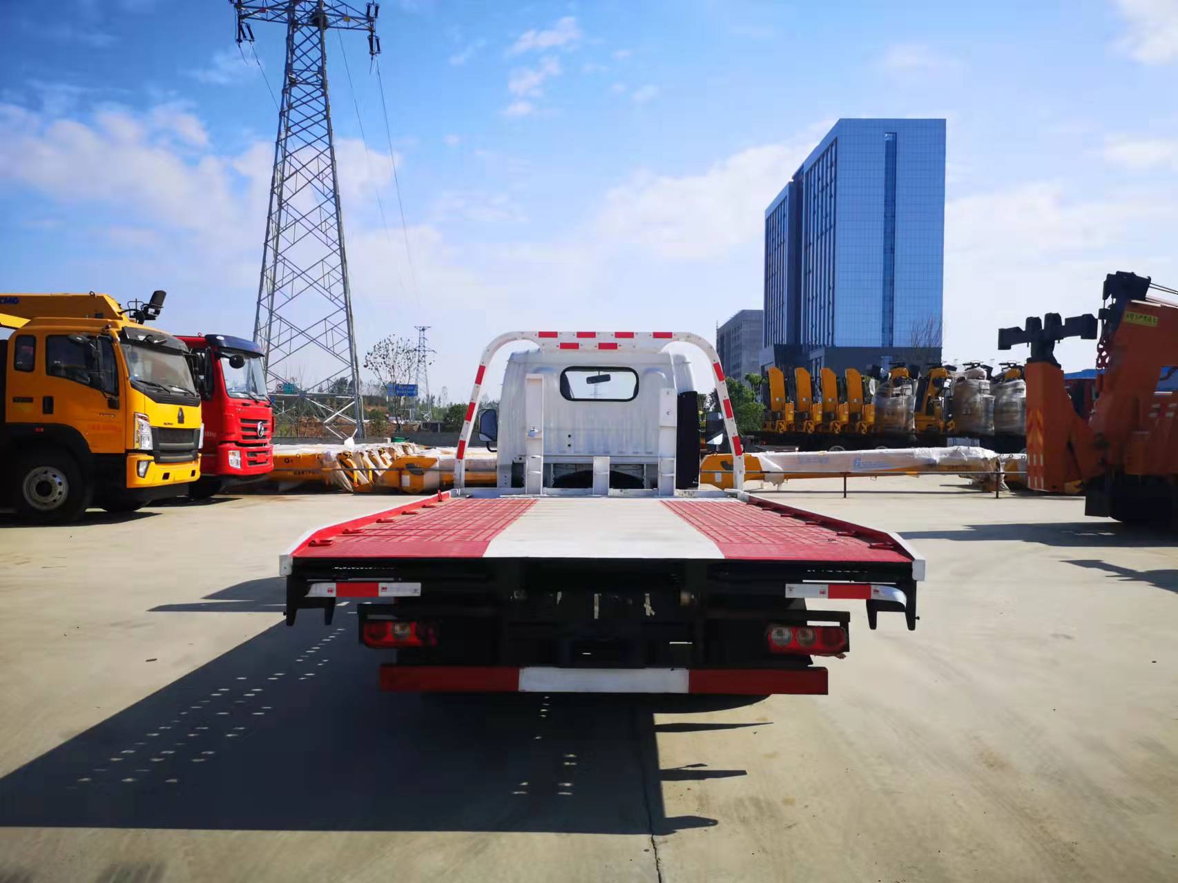 3噸上裝,4噸卷揚,21米鋼絲繩,底板為高強鋼沖孔板,板長4.2米,寬2.3米,配四根捆綁帶,擋胎板2個,工具箱一個,LED工作照明燈,其余標配。